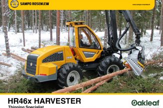 The HR46x Harvester has plenty of power packed in for a forest machine of its size. The large turning angle, its compact size and practical design enables the harvester to easily manoeuvre through dense young forests without damaging the remaining trees and preserving the soil. The HR46x harvester is easy to operate, productive and cost-effective. The capital and running costs are low but the machine production rate is higher than heavier machines.
