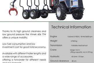 Available with different trailer lengths and a wide range of accessories, Vimek offers a forwarder for different needs and requirements.